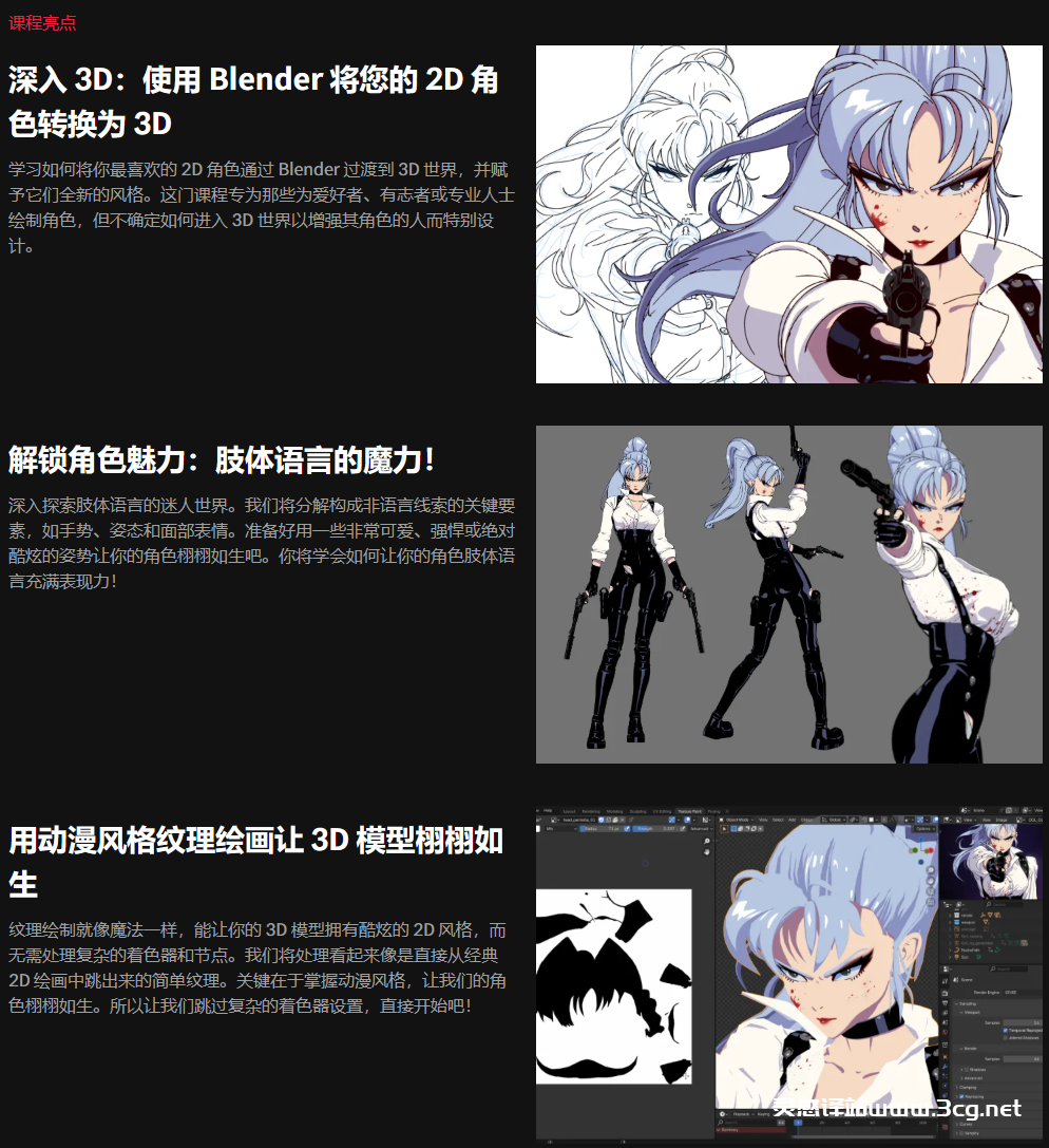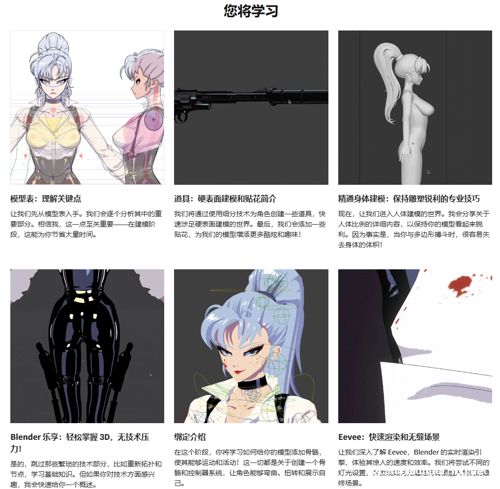 教程由资深2D/3D角色艺术家Raul Trevino讲解,系统教授如何将二维动漫角色插画转化为三维模型。课程内容涵盖角色手部、身体、头部、头发、服装与鞋子的建模方法,以及贴图绘制、UV展开、基础绑定、姿势与表情库建立、渲染展示等完整流程。课程重点在于保留角色的二次元风格,让你的插画角色以三维形式生动呈现。适合插画师、漫画作者及希望从2D跨入3D的创作者,快速掌握动漫风格的3D角色制作核心技能。